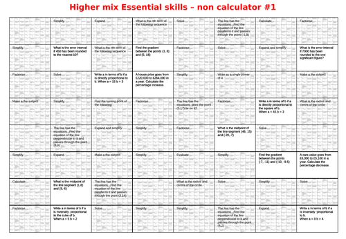 Maths Gcse 9 1 Higher Non Calculator Revision Mats Teaching Resources