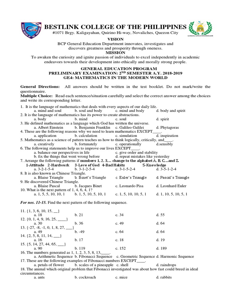 Gec 4 Mathematics In The Modern World 1 Bs Accountancy Studocu